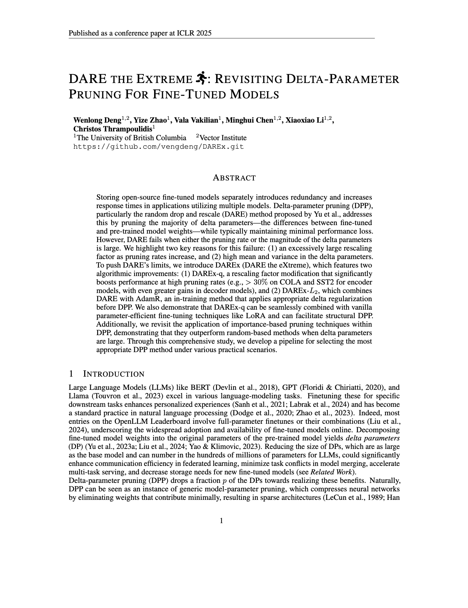 A comprehensive study of delta-parameter pruning that introduces DARq and AdamR to address the limitations of existing methods, enabling efficient storage and deployment of multiple fine-tuned models.