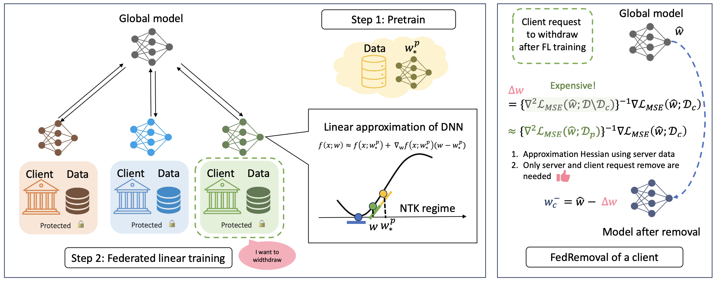 A federated learning framework that enables certified data removal through linear approximation and efficient removal strategies, providing theoretical guarantees for the right to be forgotten.